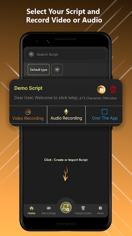 通过应用程序小部件可帮助您在使用任何相机应用程序录制视频期间立即在手机屏幕上读取选定的脚本文本。