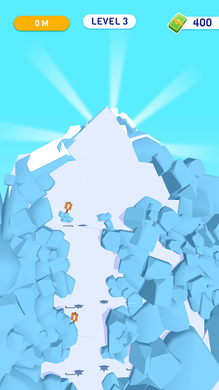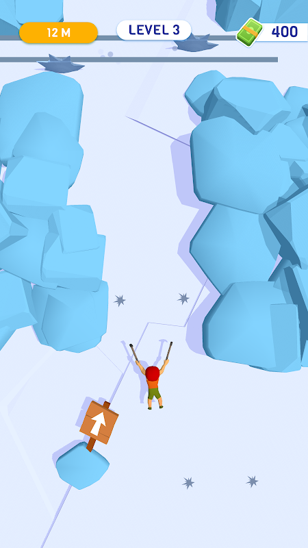 Draw him back and stretch his arms while he tries not to fall off the mountain!