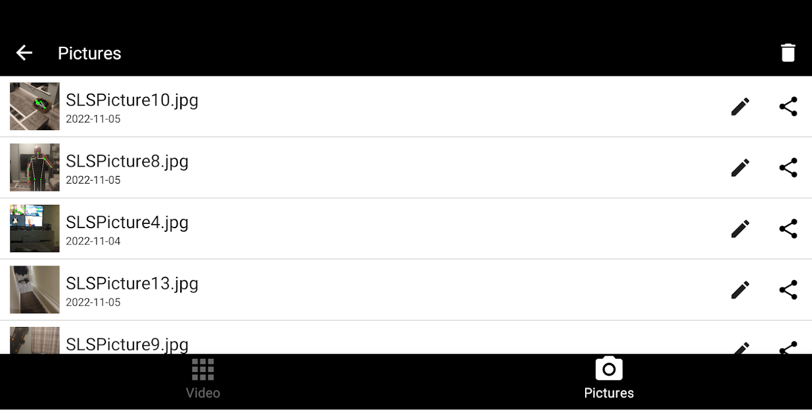 Gallery (view saves screenshots and videos, as well are sharing options)