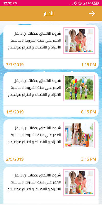 - عرض الأحداث والمناسبات التي تنظمها الحضانة وتفاصيلها