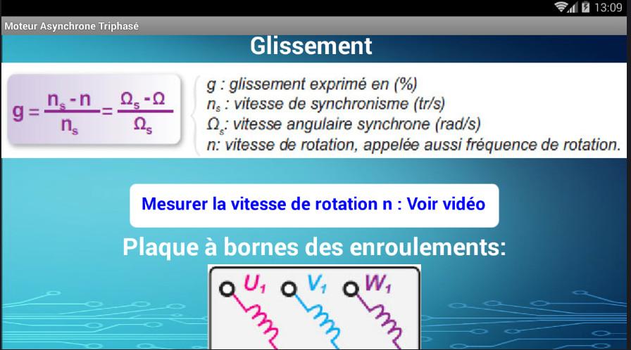 该应用程序包含两个课程;平衡三相系统,三相异步电动机。