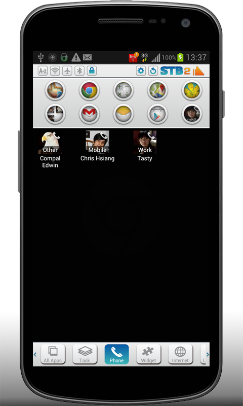 Smart Taskbar takes widget support differently. Instead of showing your widget to Home screen, you use widget in Smart Taskbar just like launching a regular App. It is very convenient if you have too many widgets to show or you want higer security by not letting people easily see your social widgets at Home screen.