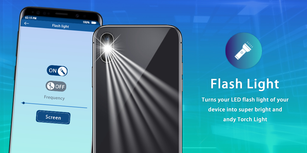 ColorFull Flashlight provides a powerful light as a torch and blinking flash light features.