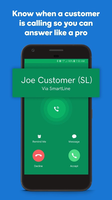 当有人拨打您的第二个电话号码时,它会响起您的电话并显示这是商务电话,因此您知道如何接听电话。当您通过SmartLine打电话或发短信时,客户会看到它来自您的新公司电话号码,因此您的个人号码保持私密。