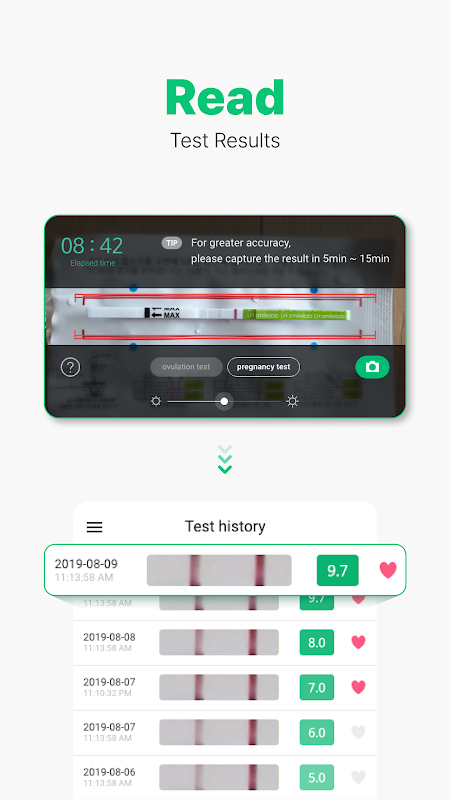 - 排卵测试:当您拍摄我们的排卵测试照片时,您可以直接在此应用程序内跟踪结果。绘制您的周期并准确了解您何时准备好受孕。