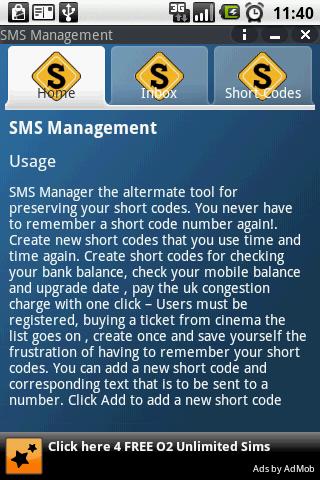 SMS Manager the ultimate tool for preserving your short codes. You never have to remember a short code number again!.