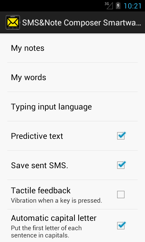 Write your SMS and your notes on your Sony SmartWatch 2 with this application.
