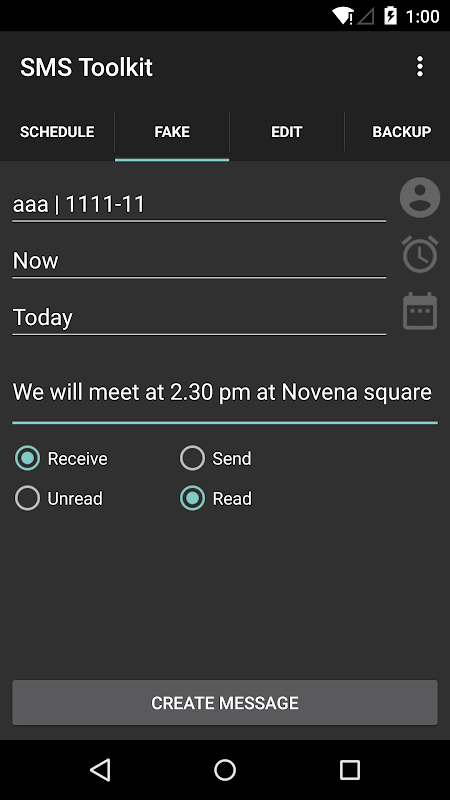 - create any type of fake messages on your phone, be it sent/receive/read/unread/fail, etc