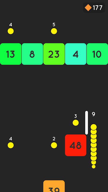 Try to destroy the brick to get more scores, but remember only destroy the brick have lower value.