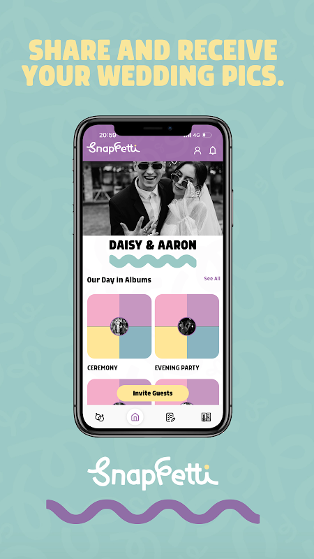 使用 SnapFetti 照片共享应用程序传播婚礼当天的爱。