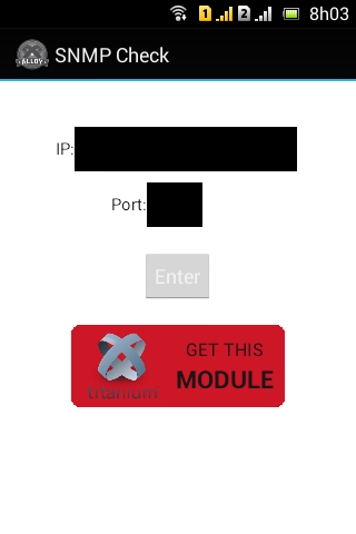 SNMP Check is an application to poll various devices and collect, store and display the information visually. If you want to build your own Titanium SNMP application you can download the module here: https://marketplace.appcelerator.com/apps/9238.