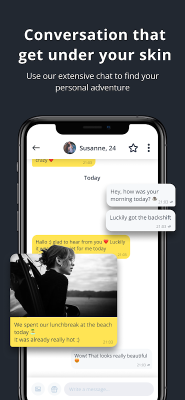 你知道这个故事。向右滑动以显示您对潜在合作伙伴的兴趣,如果您想查看不同的个人资料,请向左滑动。如果你们都喜欢对方,那就是一场比赛。配对游戏是寻找更深入对话等的最佳方式。比赛中最好的事情是什么?第一条消息永远免费!这是给潜在合作伙伴留下好印象的关键。用它!