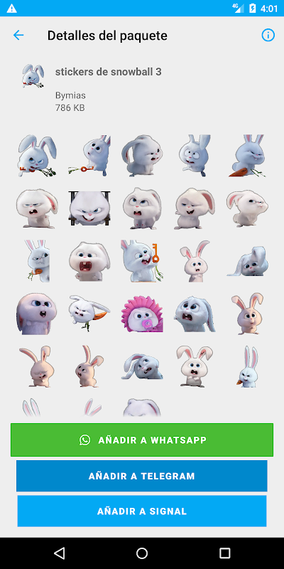 Esta aplicación trae colecciones de stickers del hermoso y adorable conejo snowball para WhastApp , Telegram y Signal.