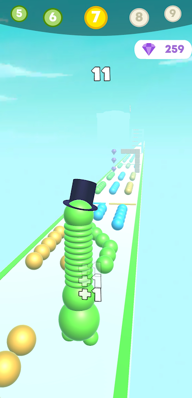 What does a snowman 3d want in winter? He dreams to become the tallest man made of snow, and also receive hats as a gift. Run on the road, collect colored balls in order to increase the hight of the long neck snowman head and to win christmas gifts.