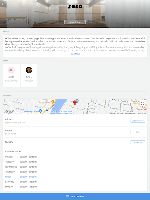 下载应用程序以查看 SOBA 的日程安排和预订课程!