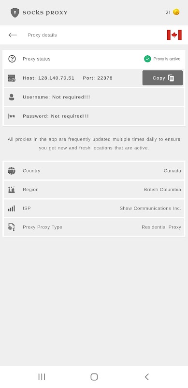 Socks Proxy 提供每日访问精选全球高速 SOCKS5 代理列表的服务。无论您是测试特定地理位置功能的开发者、收集全球数据的研究人员,还是仅仅重视在线隐私的普通用户,这款应用都能快速便捷地找到所需的代理。