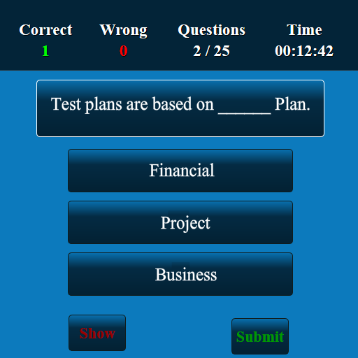 此软件测试应用程序的开发旨在测试您的软件测试技能。这个程序有10,000多个选择题和答案。此软件测试测验应用程序适合所有较低,中级和较高级别。所有级别的问题都会随机显示。用户可以提高软件测试知识,并且可以在高中,大学和竞技水平考试中取得良好的成绩。这是一个免费版本,您可以在离线和在线状态下使用。