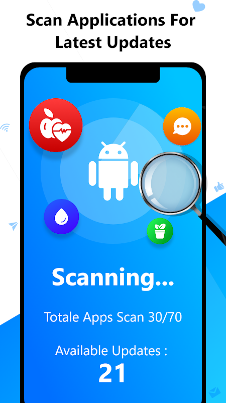 此更新软件最新版本是更新您设备上所有应用程序的工具。软件更新 2022 有助于在一个地方获取所有最新更新。您可以使用此更新软件应用程序检查器单击一下即可更新所有应用程序。使用此适用于 Android 的软件更新应用程序,您可以检查每个应用程序的最新可用版本的更新。您可以设置提醒以在软件更新检查器中获得最新版本的通知。借助更新软件的这一功能,您无需启动每个应用程序即可获得更新通知。更新软件快速更新允许您为 android 更新软件。此更新软件的最新版本为默认和已安装的应用程序提供了一个简单的界面。这样,可以使用适用于 Android 的软件更新应用程序轻松管理更新。