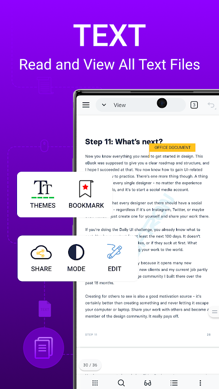 • Other Word Office reader and files: TXT, ODT, Zip