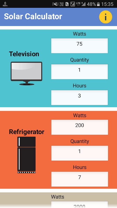 Solar Calculator is an all in one application that can help you calculate the number of solar panels and batteries required based on your power consumption pattern and solar PV panel specifications. The sleek and simple design helps the user to input individual data for each power appliance and solar panel specifications.