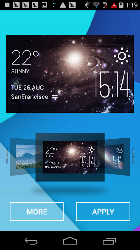 After installing Amber Weather and placing a widget on your home screen, you can choose to apply different widget skins.