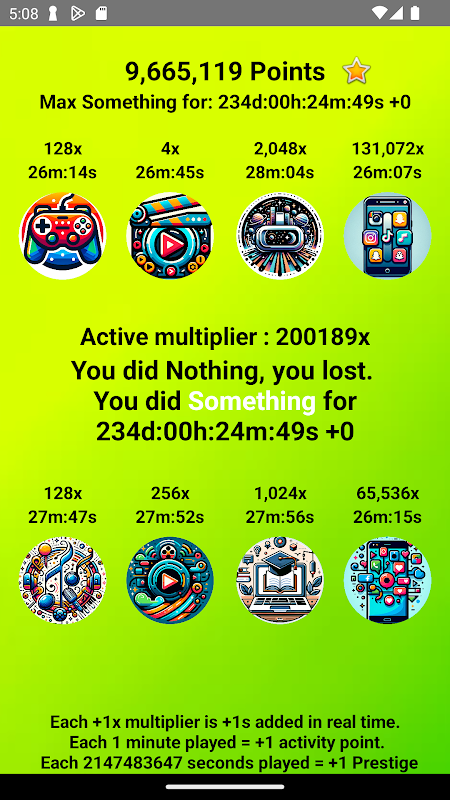 在分秒必争的“Something”中解开时间的秘密!从 8 个独特的活动开始,每个活动都有自己的挑战。升级这些活动以增加您的时间乘数,让每一刻都更有价值。