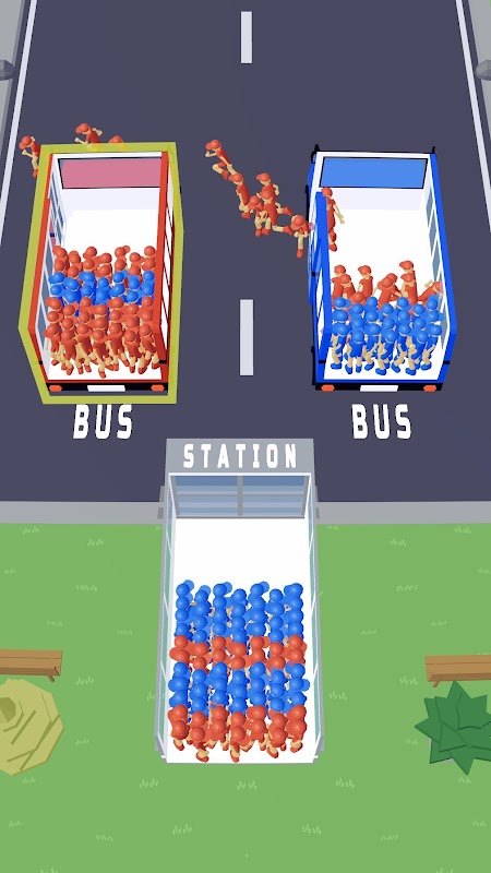 Move the commuters to their respective bus colors by following a certain order to complete the level.