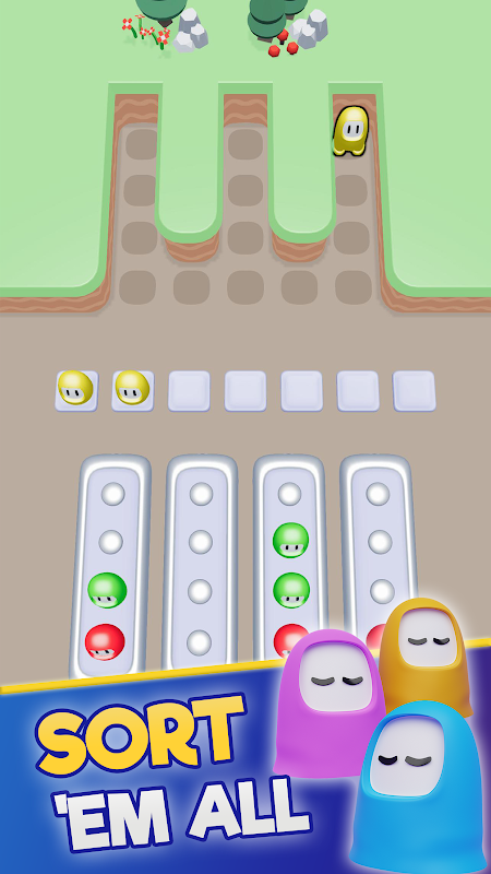 欢迎来到 Sort Jam 3D!选择 3 个颜色相同的人并匹配。当你全部匹配完后,对它们进行排序!