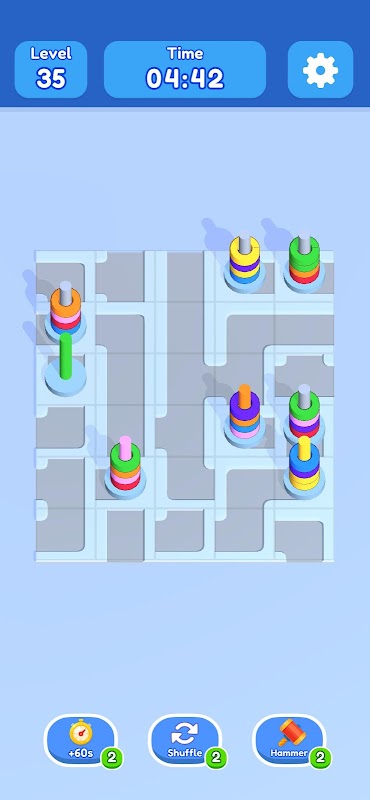 准备好测试您的逻辑和解谜技巧了吗?在这款令人上瘾且轻松的游戏中,您的目标既简单又具有挑战性:将彩色卷分类到支架上,以便每个支架上只有一种不同颜色的卷。