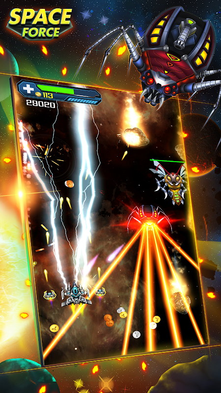 Space Force: Alien war game puts you at the forefront of a battle with space intruders. You will take control of the spaceship and protect galaxy from alien swarms. In this "Space Force: Alien war" game, you will be faced an increasingly large number of enemies and deal with many epic bosses in space war.