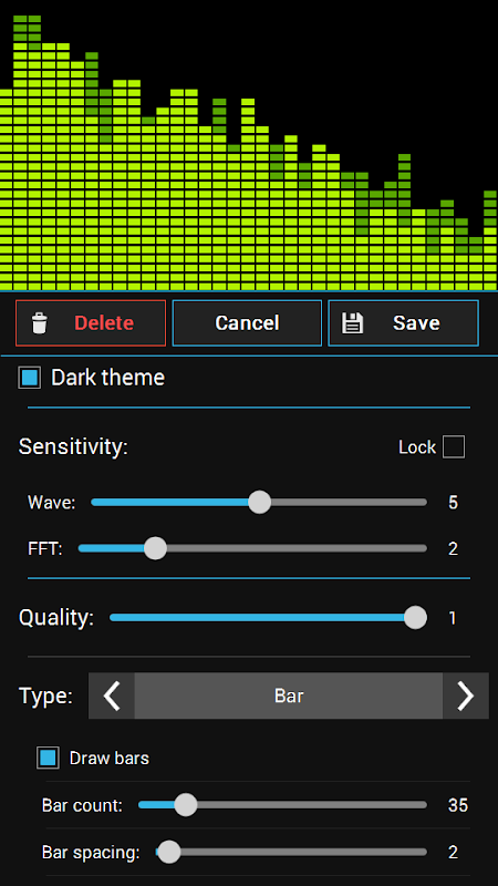 Spectrum Analyzer is a music visualization tool. You can visualize sound coming from phone's microphone in variety of shapes and effects.