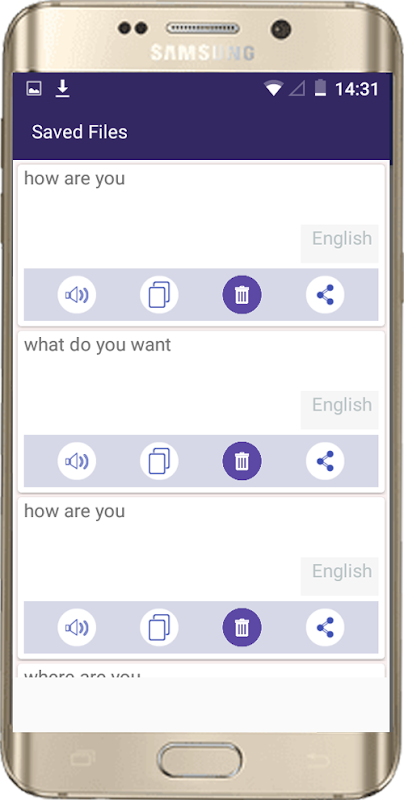 Using Speech to Text online, you can share your text file with all the supported application on your phone. You can copy the text and send as a message/text form to your contacts. Speech To Text online app provides facility to save the text into your device and next time you just share that file with copied your contacts.