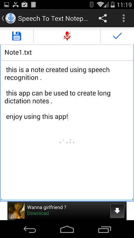 Create notes hands free! All you have to do is speak - this app converts it into text that can be edited using voice commands. For example, you can just