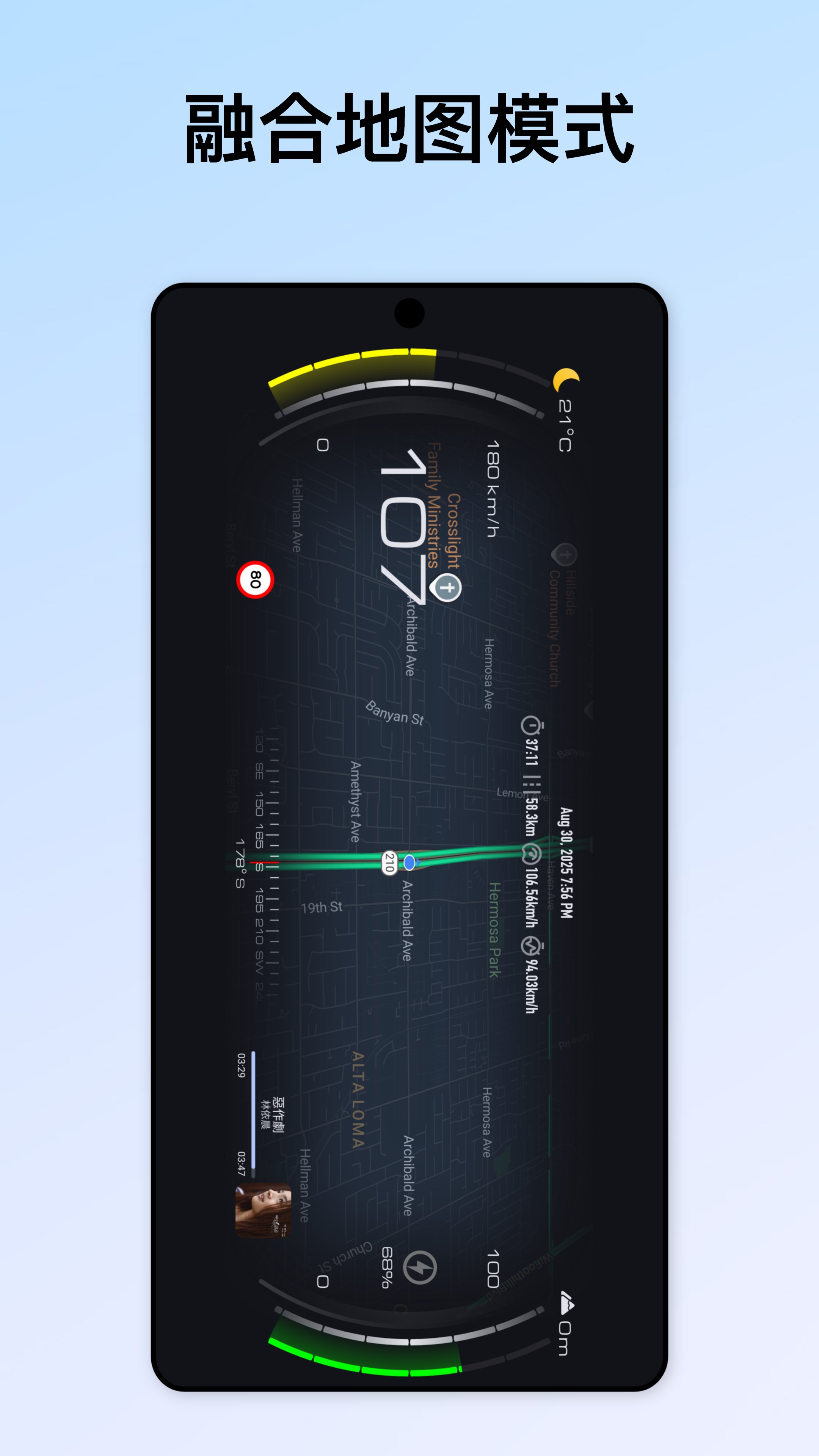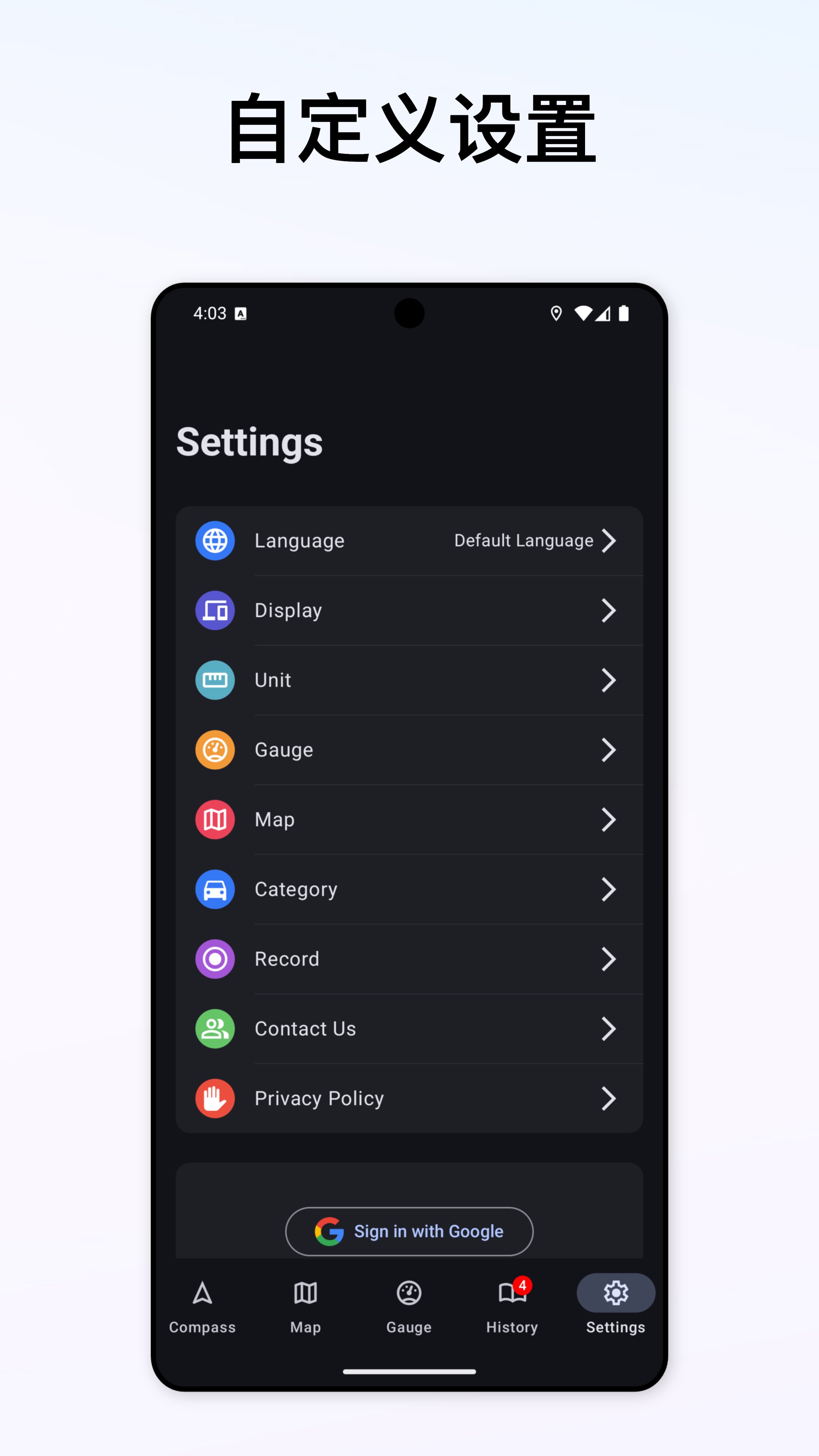 支持KMH/MPH速度单位切换,轨迹记录规则、主题风格、地图类型、语言等均可自由定制。