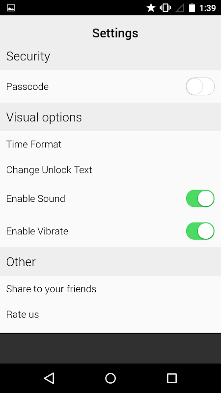 当你打开应用程序,你会看到很多的设置,这将允许您自定义锁屏。简单和友好的用户界面将帮助您定制应用程序。