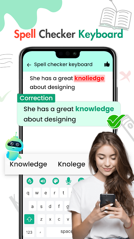 再也不用担心拼错单词了。拼写检查键盘或正确的拼写检查器为您提供准确的拼写检查,突出显示拼写错误的单词并自动更正它们。英语拼写检查键盘为您提供每个单词的拼写建议,帮助您自信地撰写论文📝、消息💬、社交媒体帖子📱、撰写电子邮件📩和其他文本,没有任何错误。