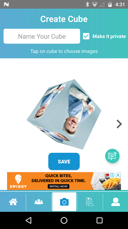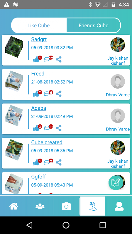 This application also enables user to create and share event & memories in a three dimensional media format. User will be able to share/Comment/like to cube. User can also create Cube with image and that post will be show to his friend.