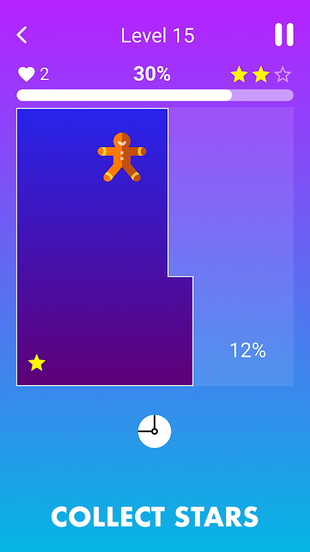 尽可能多地切割碎片,继续前进并收集星星!但请记住,你必须制定策略并快速做出决定。