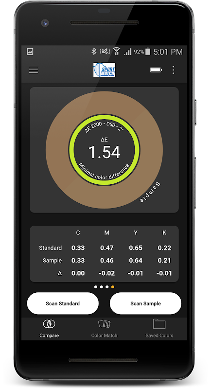 Sportmatch应用程序是一款有助于颜色识别的软件。比手机还小,Sportmatch色度计可以在任何地方使用。 SportCoat的我们的团队将与您合作,为您的程序确定库中的最佳颜色。我们已经设计出2000多种自定义颜色,我们保证您会找到与组织制服,基础架构或任何其他需要该团队颜色的项目的规格完全匹配的颜色。借助Sportmatch软件,每个人都可以识别颜色,与样品进行比较并检查数据以确保完美匹配!