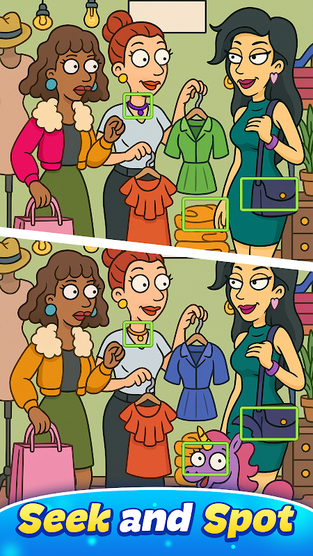 - 玩找不同游戏并获得独特的奖励关卡。