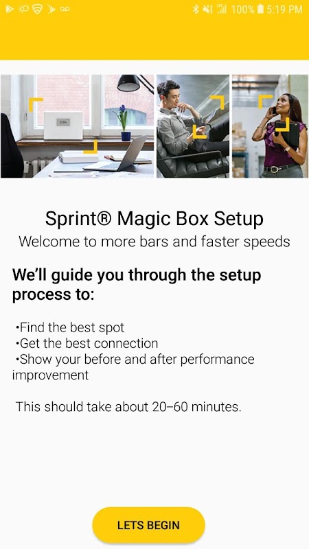 Use the Sprint Network Tool to help you find the best spot to set up your new Magic Box. Use the Compass, Signal Meter and SpeedTest features to select the optimal location and get a faster, more reliable data experience inside your home or business.