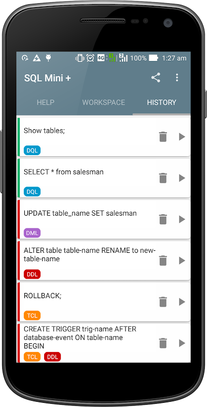 Then this app has got you covered. Practice and Run all your SQL Queries on your Android Device and get rid of all those old grueling command line applications and other online alternatives.