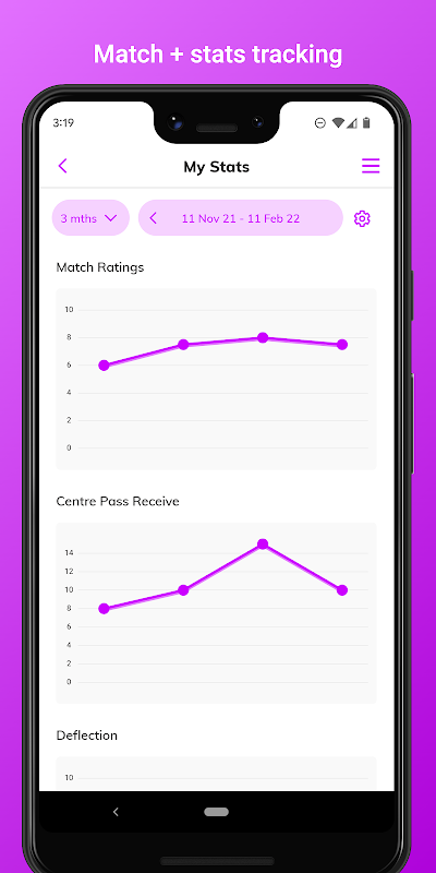 设定并与教练分享您的比赛目标。记录并跟踪您的统计数据和一段时间内的进展。回顾您的比赛表现并设定目标来激励自己并提高。