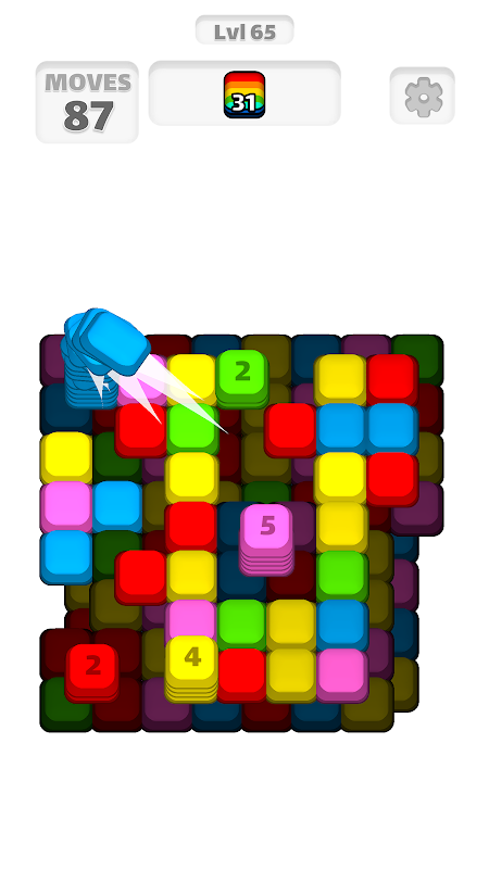 点击以堆叠相同颜色的图块,达到 6 个或更多以收集它们!
