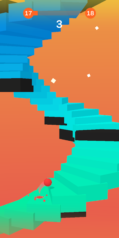 按住屏幕,让球在楼梯上弹跳,不要撞到黑色障碍物!按住屏幕可快速跳跃并尽可能长时间地弹跳,成为一个火球并全速打破黑色平台。