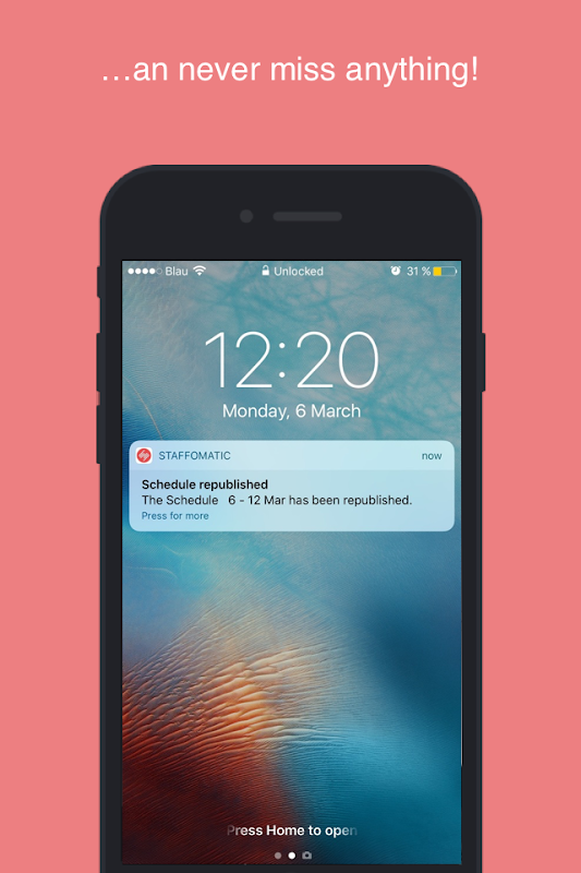 Don't miss your shift thanks to the STAFFOMATIC employee app and get notifications for your next shift directly on your smartphone!