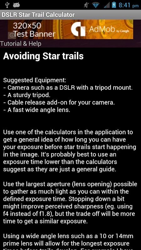 您是否有兴趣与固定三脚架和数码单反相机做天文摄影时,有一个伸出援助之手?此应用程序可以帮助你计算出估计的最大曝光时间,以避免星迹,而不需要跟踪安装。它也有可用于给你的足迹多久会给出约你的相机,镜头和曝光时间的输入像素的估计创造星迹照片计算器。这三个计算器范围从简单的双输入计算器,一个是先进的天文摄影相机的用户。此外,还包括一些提示和帮助屏幕来提高你对过程的理解,并描述每个所需输入的计算器。这是简单的,但不正是你需要的。这是一个惊人的预算天文照片!