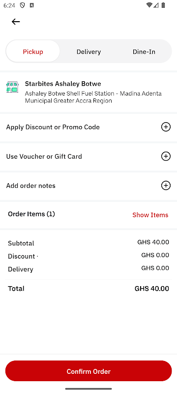 您可以直接从应用程序安全地使用 Mobile Money(跨所有网络)、GhQR 或 Visa/Mastercard 付款,还可以轻松地重新订购您最喜欢的餐点。