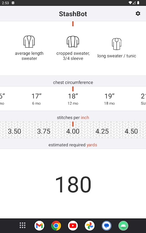 只需输入尺寸和针距,即可估算所有针织项目的纱线需求!尺码适合婴儿和成人。