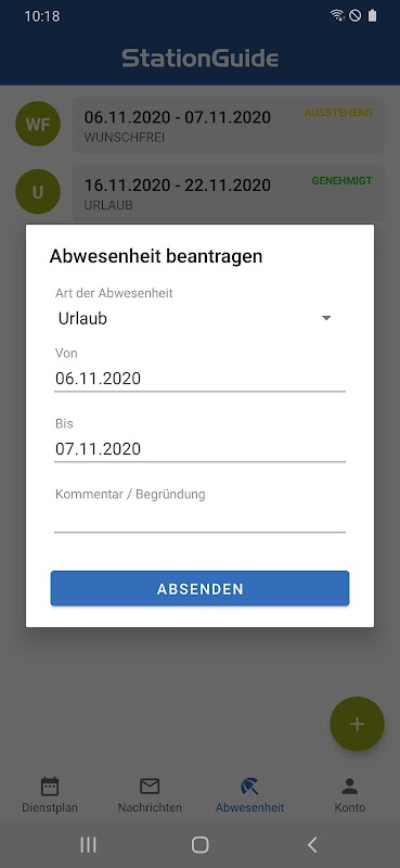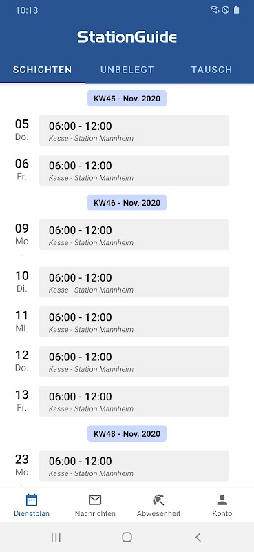 StationGuide员工应用程序允许您在移动中随时查看所有重要信息。您可以查看轮班,交易并申请公开轮班。也是度假应用程序u.v.m.现在可以通过app方便地申请!